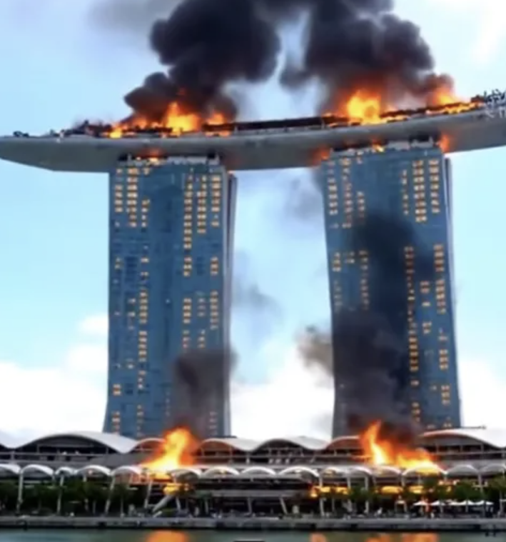 This imagined moment is not about destruction. It’s about symbolism. Fire, after all, is one of humanity’s oldest metaphors. It represents both destruction and renewal, chaos and cleansing, fear and resilience. By picturing Marina Bay Sands “under fire,” we explore not disaster, but the enduring