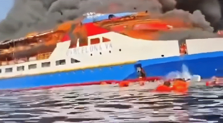 A passenger ferry, carrying approximately 300 people, caught fire off Talise Island in North Sulawesi, Indonesia, on Sunday while on its way to Manado Port. Some passengers jumped into the sea to avoid flames, with many feared trapped on the ferry named KM Barcelona VA.