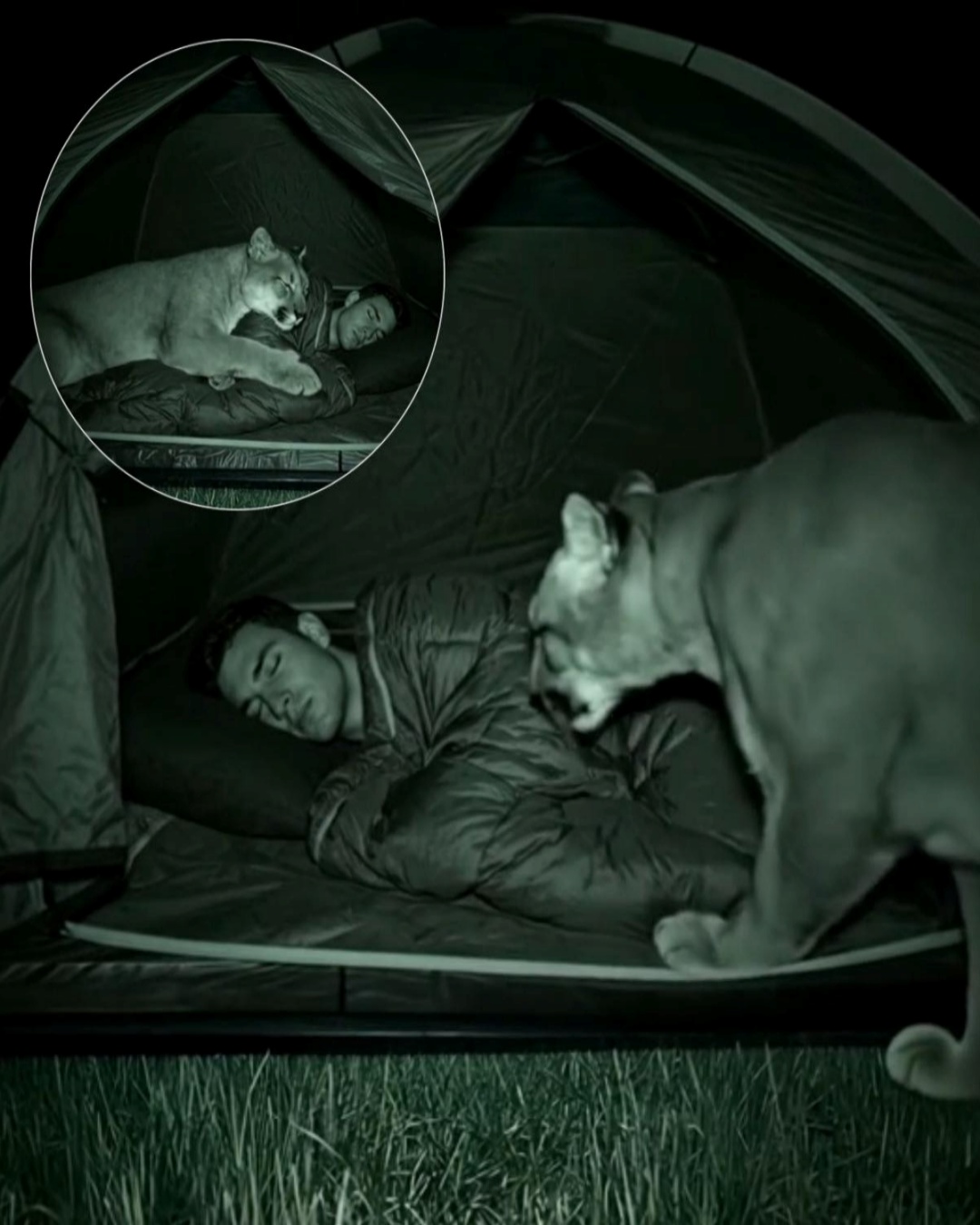 The story spread quickly, shared as both caution and wonder. People marveled at the intimacy of the moment, at the unlikely image of predator and human sleeping back to back, divided only by nylon and luck. Others shook their heads in disbelief, convinced no man could sleep so deeply with danger so near. Yet the footage remained undeniable.