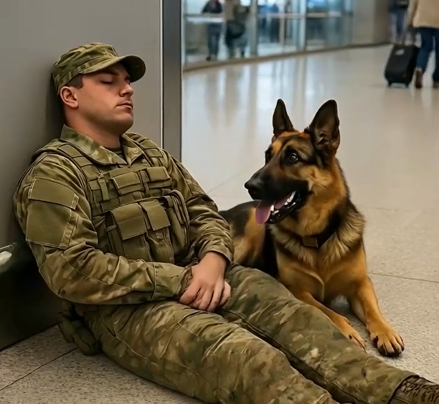 Travelers at Airport Spotted a Uniformed Man Resting on Floor — His Dog Growled at Anyone Approaching